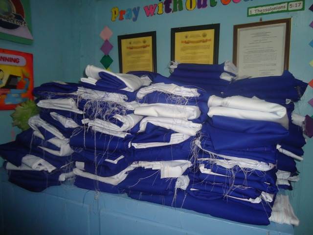 Every new school year brings a need for new school uniforms. Those of our children who have been with us last year get to add one more set to their school outfits. This way they can always wear one while the other one is being washed. The new children will be the happy owners of one set; at least for now. Thank you, sponsors, and other donors for making these outfits possible!