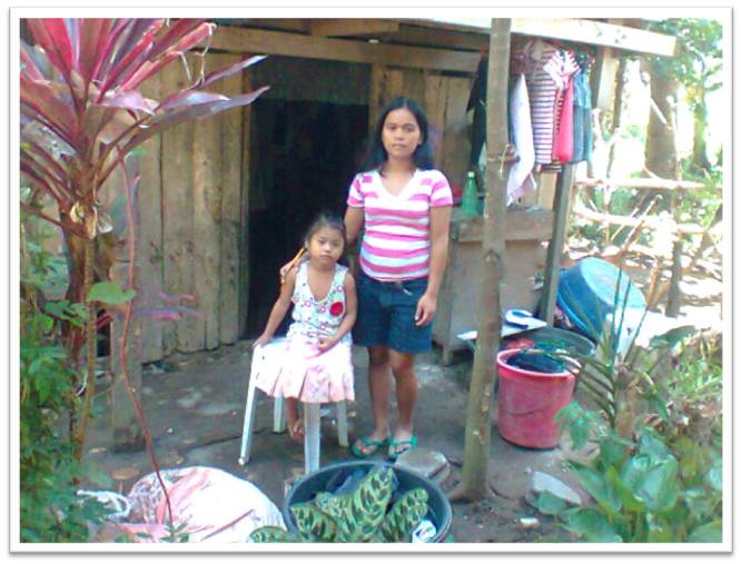 The family consists of three children. The eldest, Efreylen (5), is a kindergarten student in KMMS. She has two brothers. The father works far from home (in Manila) and is able to send home only a small financial support.